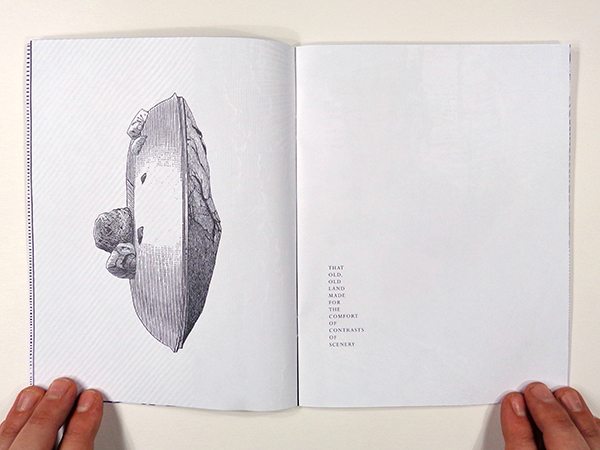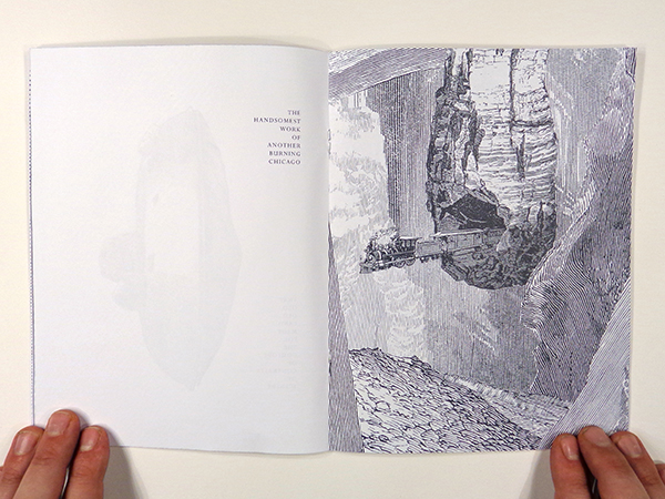 Pacific Tourist Redux is the interpretive re-working of a book originally published in the 1870’s detailing sites, towns and train tourism in the western United States. Text passages and illustrative etchings are scanned, spliced, edited and collaged back into a new book exploring subconscious understandings of national history.